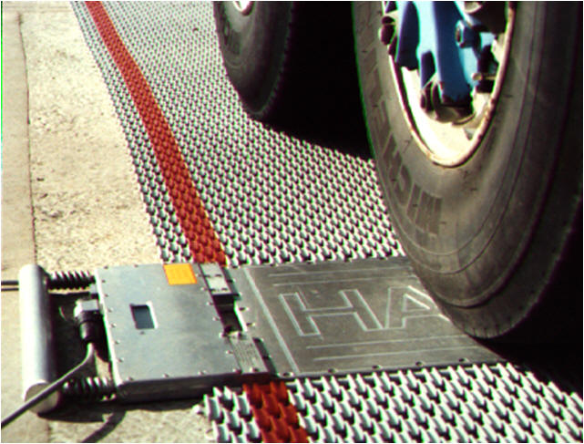 جهت توزین خودرو با این نوع باسکول، خودرو باید محور به محور روی باسکول متوقف شود. اين باسكول داراي نمايشگر ديجيتال ميباشد که با اتصال دو عدد باسكول به يكديگر با استفاده ازكابل رابط ، وزن محور مربوطه (مجموع وزن دو چرخ) بر روي نماشگر هر باسكول ديده ميشود. باسكول WL103 داراي سيستم جبران حرارتي و تنظيم خودكار صفر ميباشد. براي افزايش دقت توزين ميتوان از حصيرهاي ترازكننده كه ضخامت آنها معادل ضخامت باسكول است، استفاده كرد. اين حصيرها يا به صورت 4 حصير بلند هستند كه در دو طرف باسكول گسترده ميشوند و يا به شكل حصيرهاي كوتاهي هستند كه در هر مرحله از توزين در جلوي چرخهايي كه روي باسكول نميروند، قرار داده ميشوند. علاوه بر اين، با اتصال يك جفت باسكول به پردازشگر EC100 يا كامپيوتر(با نرم افزارEC200)، امكان تهية پرينت لحظهاي از وزن چرخ به چرخ، وزن محور به محور، وزن كلي خودرو و ميزان جريمه (متناسب با قوانين محلي) فراهم ميشود.  |